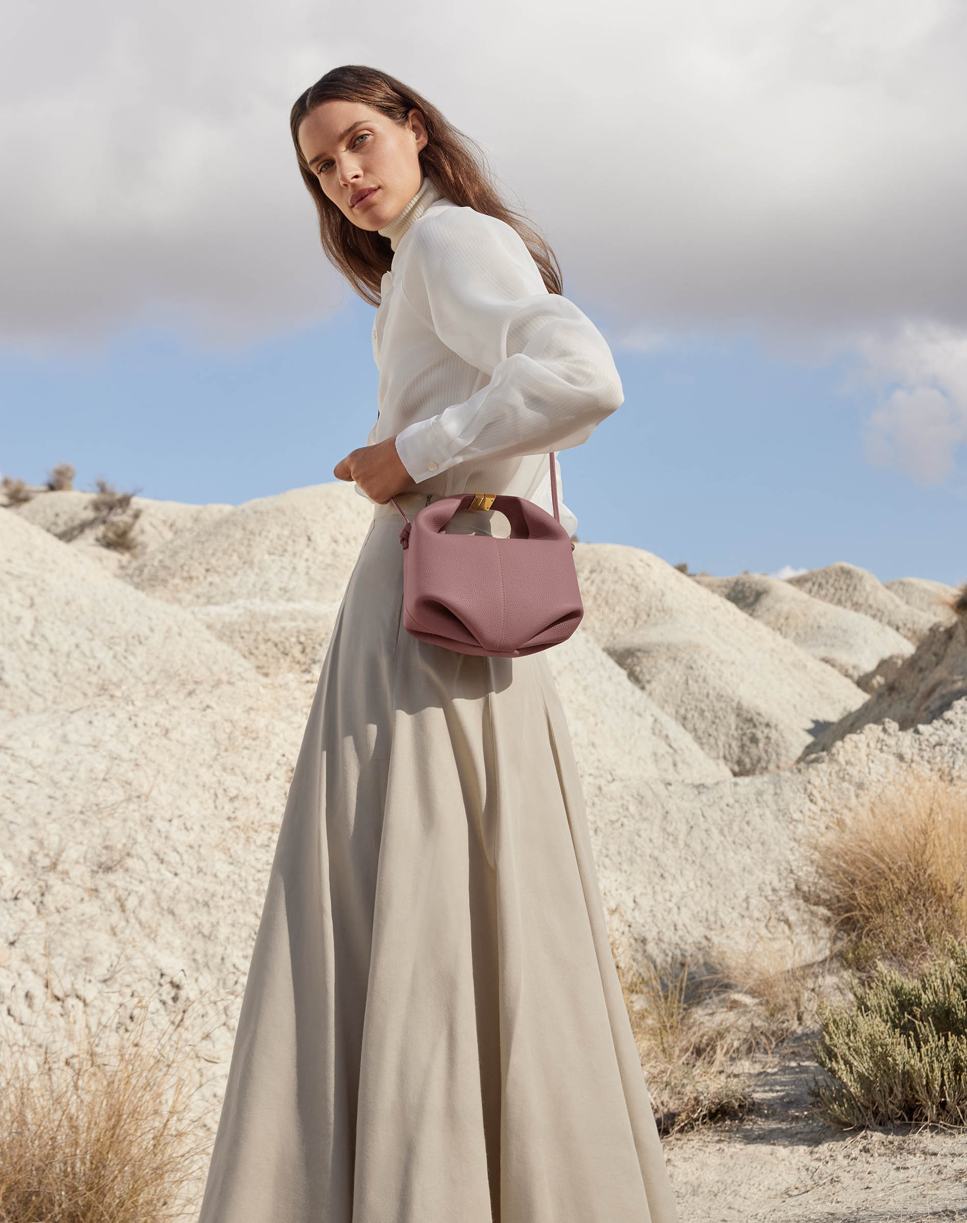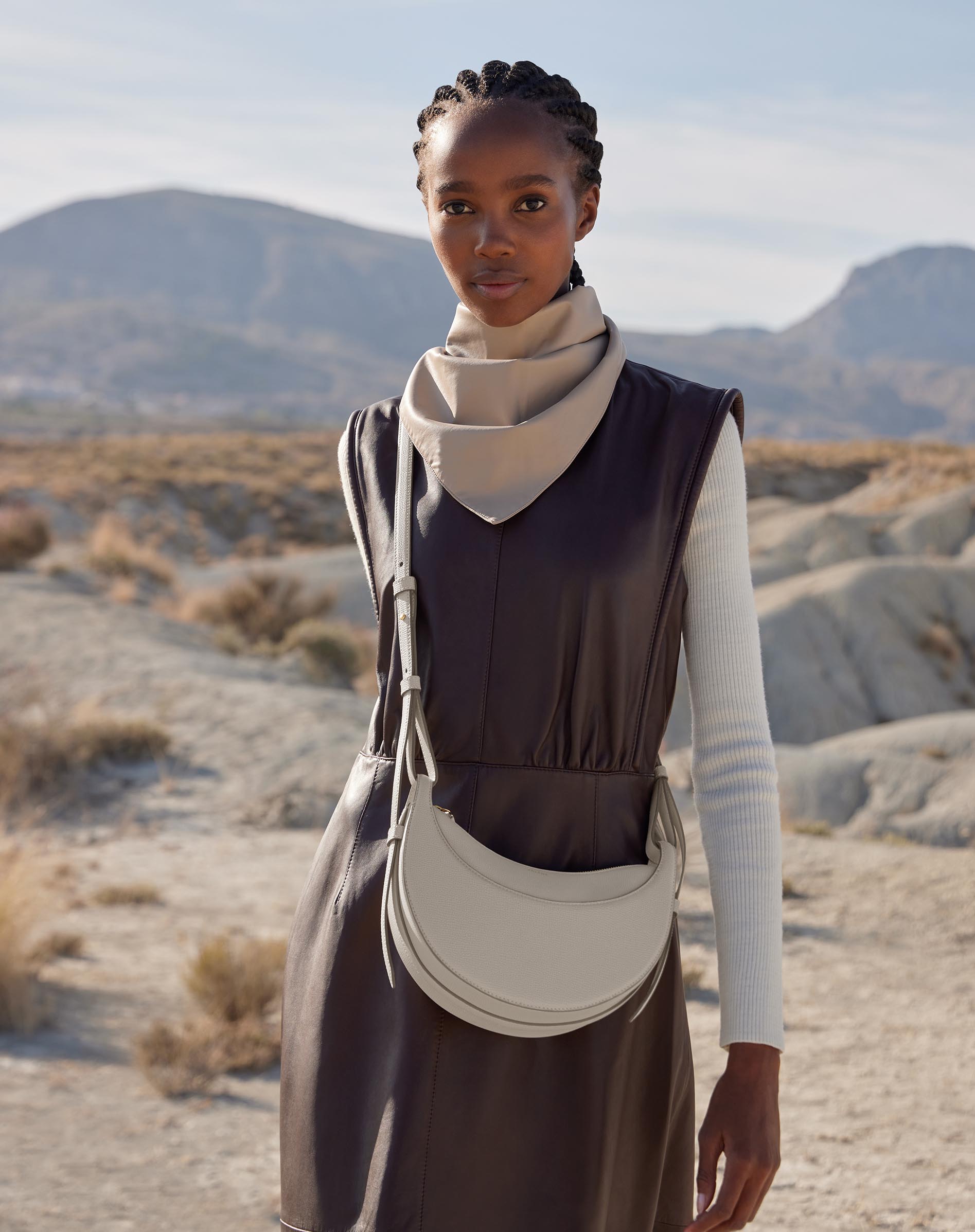 The softness of the Mahoya dunes. A landscape chosen for its rounded lines, rolling hills, and unobstructed nature. A palette of soft, muted tones that call to mind the brand’s signature hues