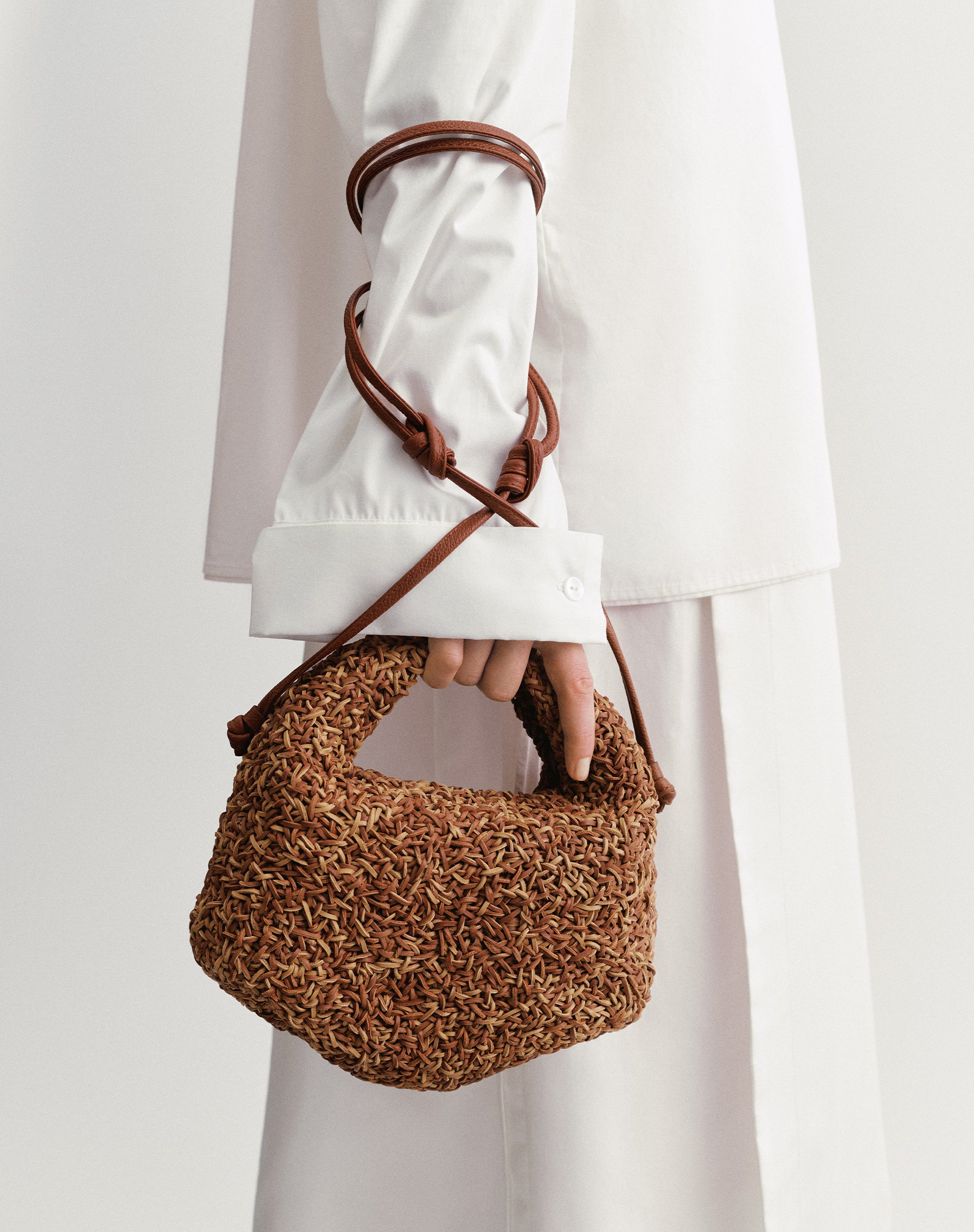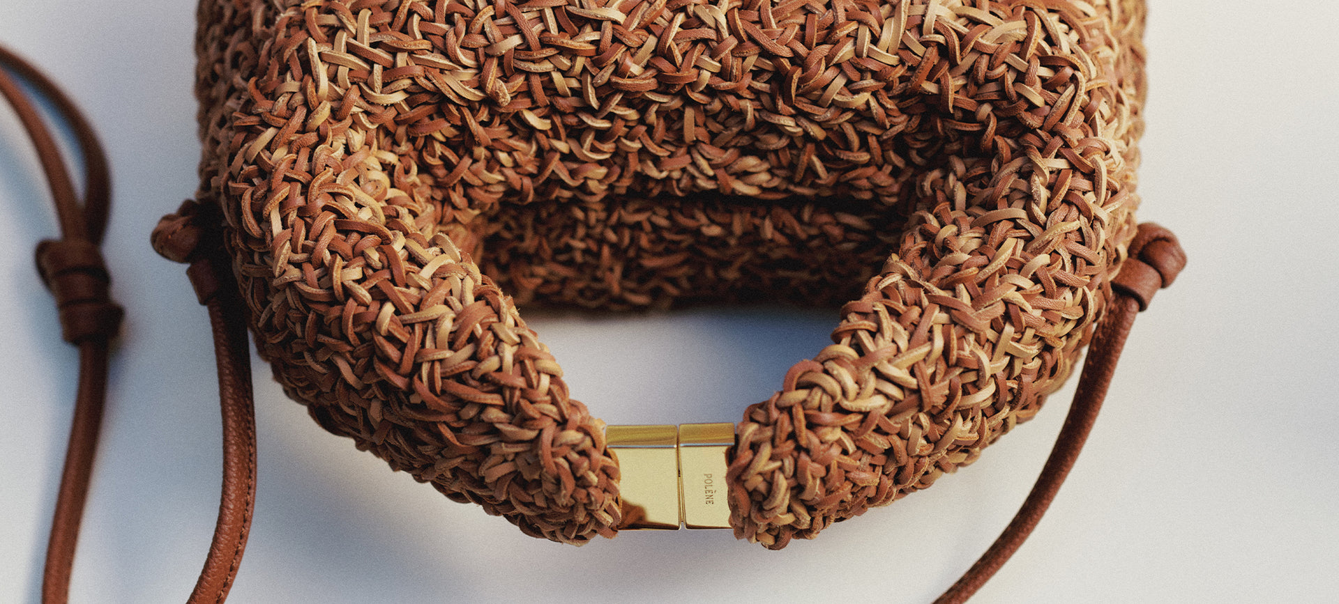 Tro mod sin filosofi henter Polène inspiration til Rizom Edition fra naturen, hvor taskens sammenflettede snore vikler sig ind i hinanden som rhizomer – usynlige rødder, der forbinder og forlænger livet under overfladen.