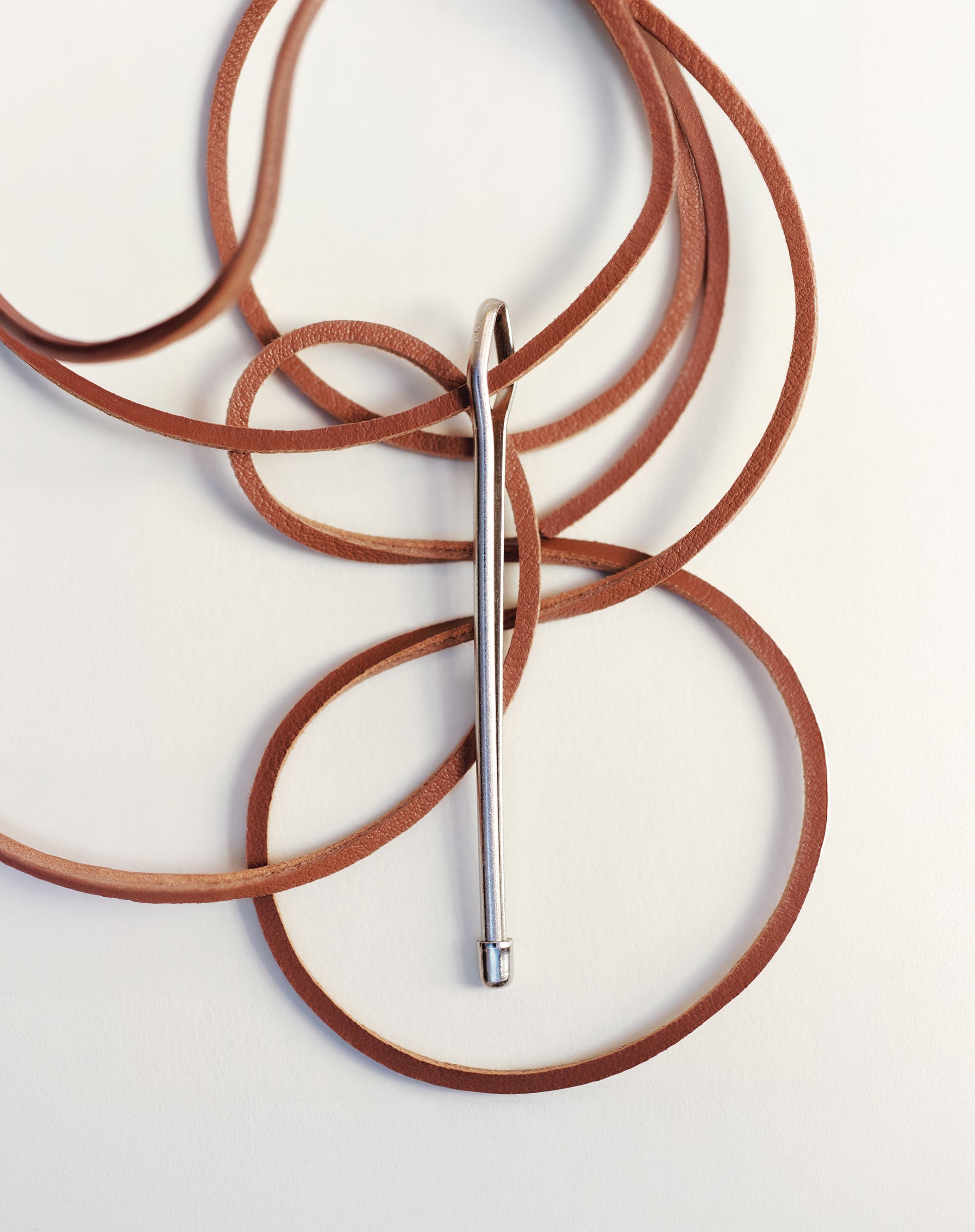Den ikoniske silhuet er sammensat af fire læderstykker og pyntet med håndflettede lædersnore, hvor hver snor og hvert tilsyneladende tilfældige sting fremhæver produktets unikke karakter. Som sande pionerer inden for faget sammensætter læderhåndværkerne mønstre og læderkombinationer, hvor hver knude, bundet med stor præcision og tålmodighed, kan tage op til fem dage for at opnå det perfekte resultat.