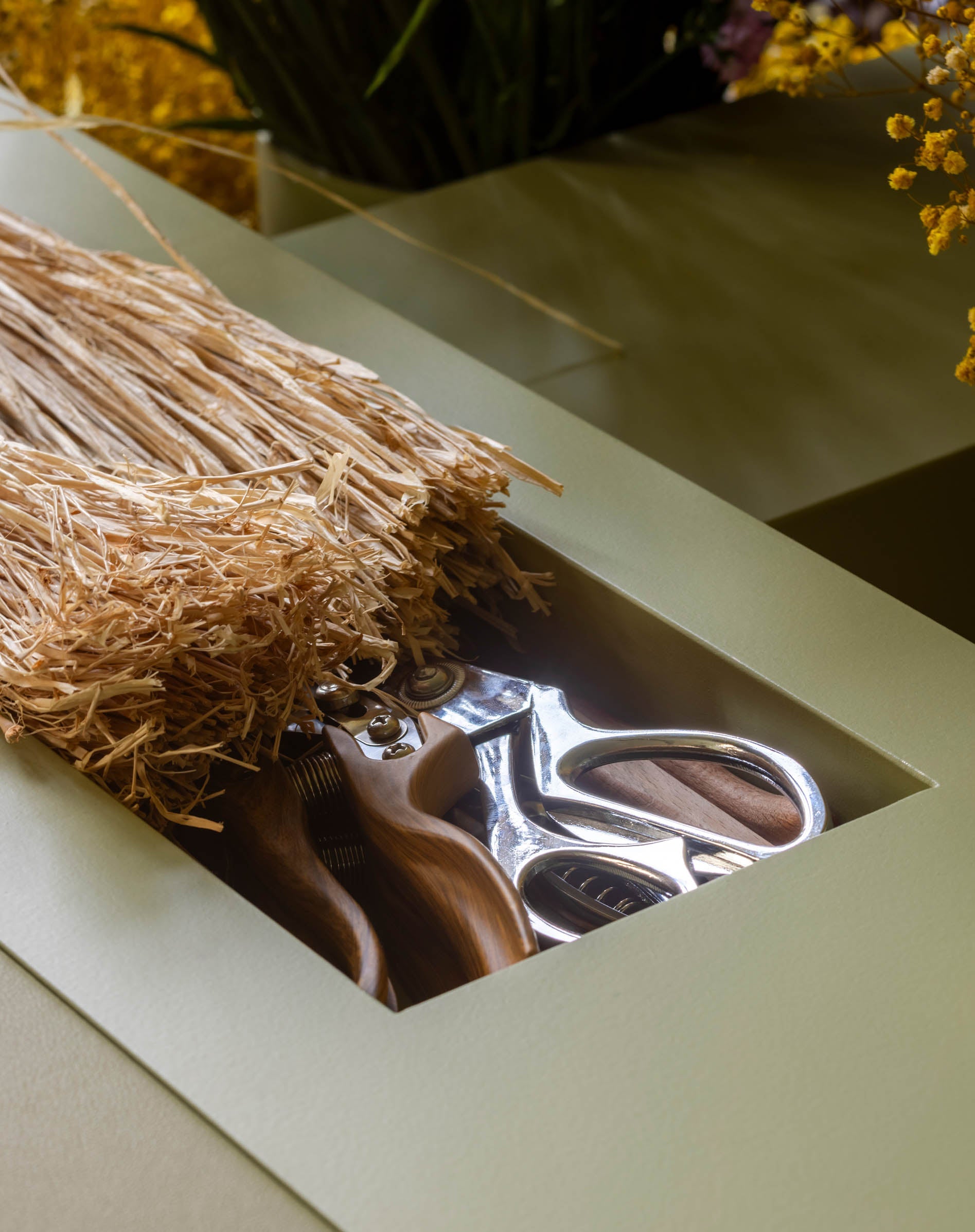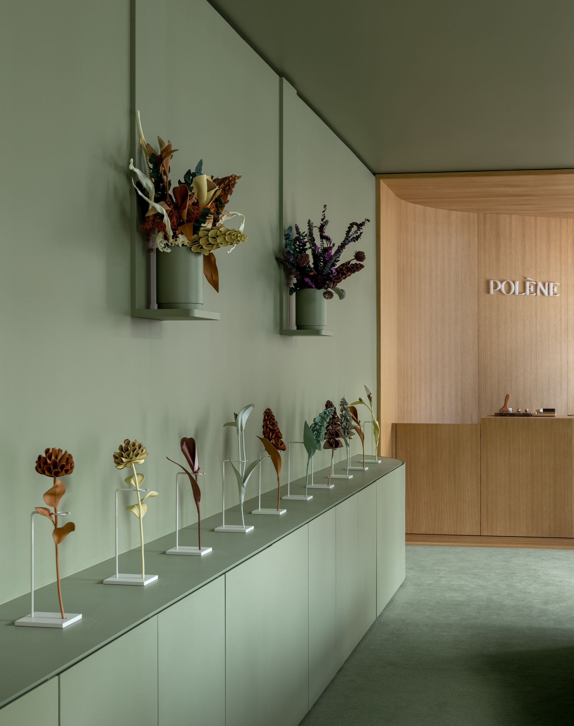 The Maison’s first pop-up pays tribute to its Leather Flowers through a unique hybrid experience combining a flower shop and a leather atelier visit. Inside, with the help of a florist, create personalized bouquets composed of leather flowers and dried foliage. An artisan trained in Ubrique, Spain, a town renowned for its craftsmanship and where Polène’s collections are made, meticulously handcrafts each flower using folding techniques and hand-stitching.